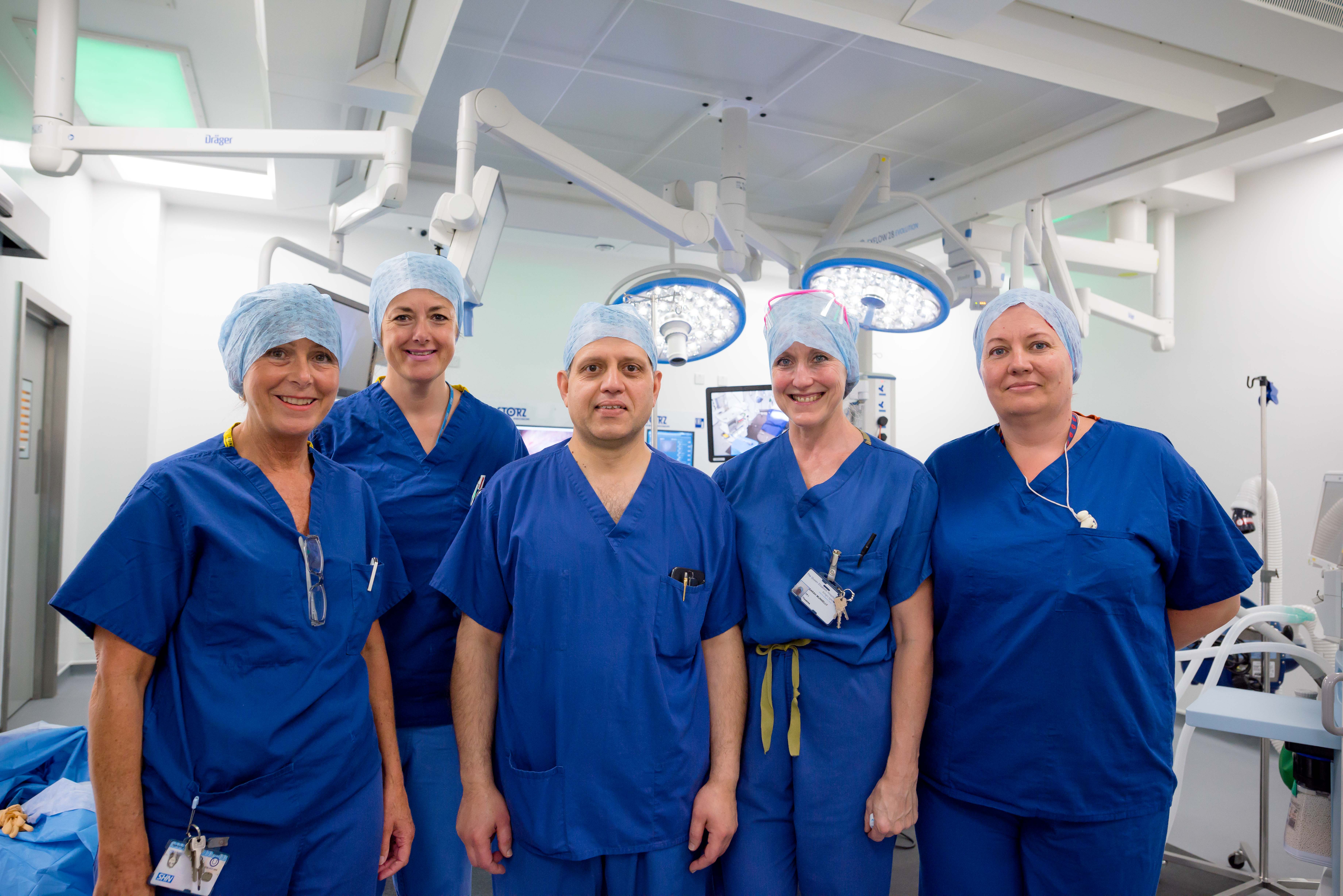 Theatre Team Leader Marilyn Kennedy, Theatre Support Christine Williamson, Consultant Surgeon Mr Zulfi Khan, Sarah Munnelly and Rebekah Smith, who are both Senior Theatre Practitioners