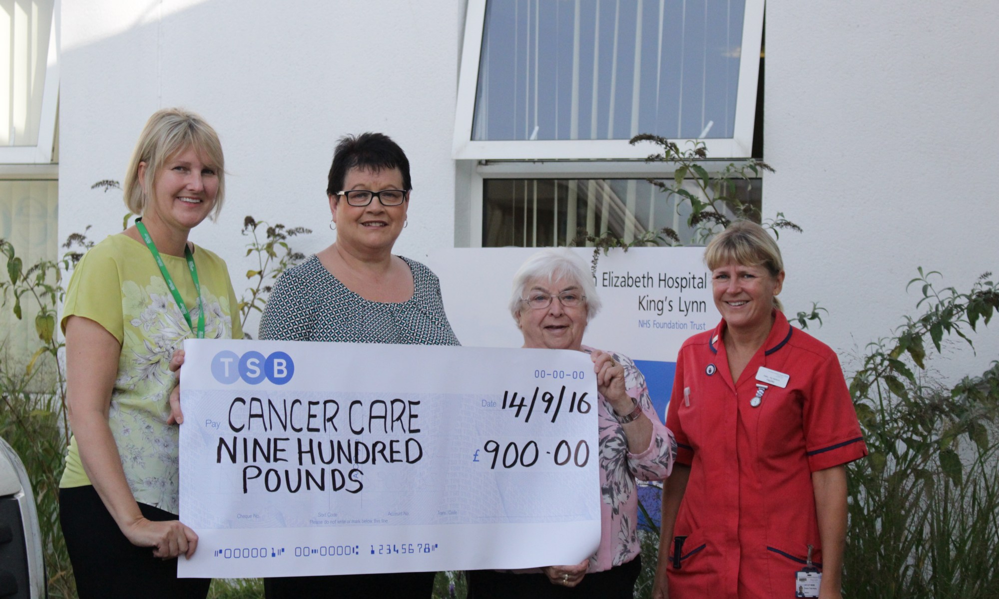 They presented the latest cheque to Vicky Mitchell, the hospital’s Macmillan Support and Information Officer, and Research Nurse Hayley Webb.