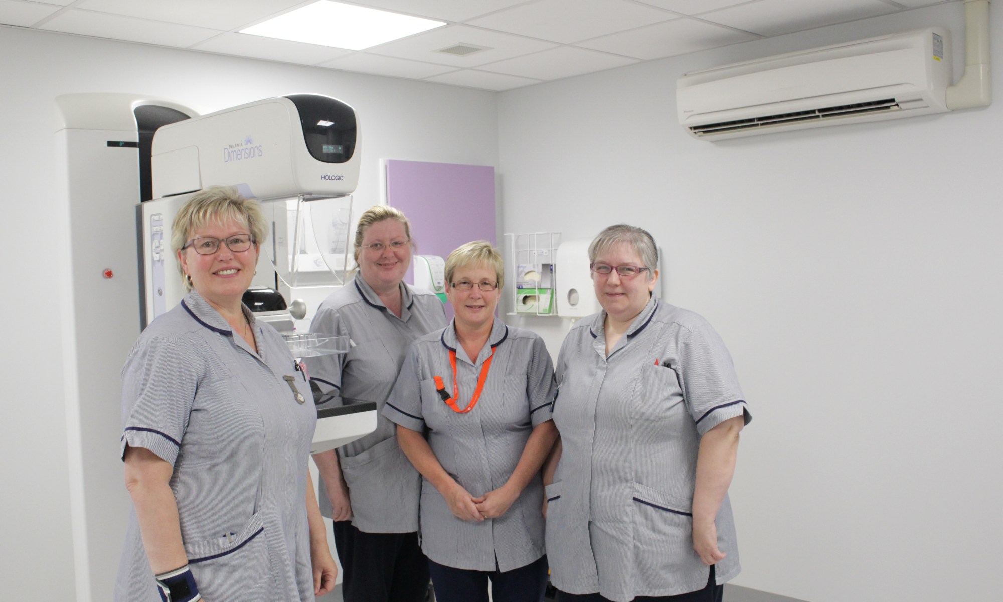 Pictured are: Marilyn O’Connell with colleagues Alex Aves, Nicki Ward and Linda Mallett in the new Breast Unit