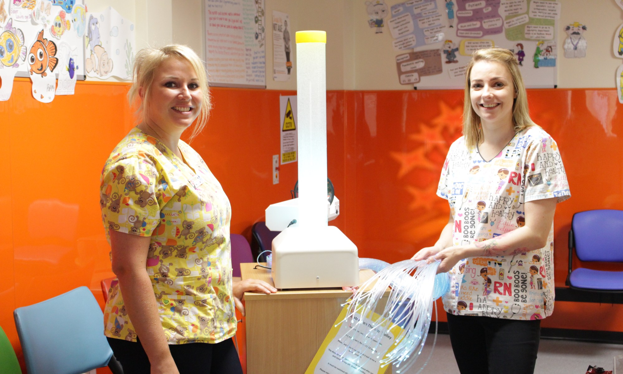 Junior Sister Laura Shepherd and Health Care Assistant Lisa Taylor are hoping to buy more sensory equipment like this.