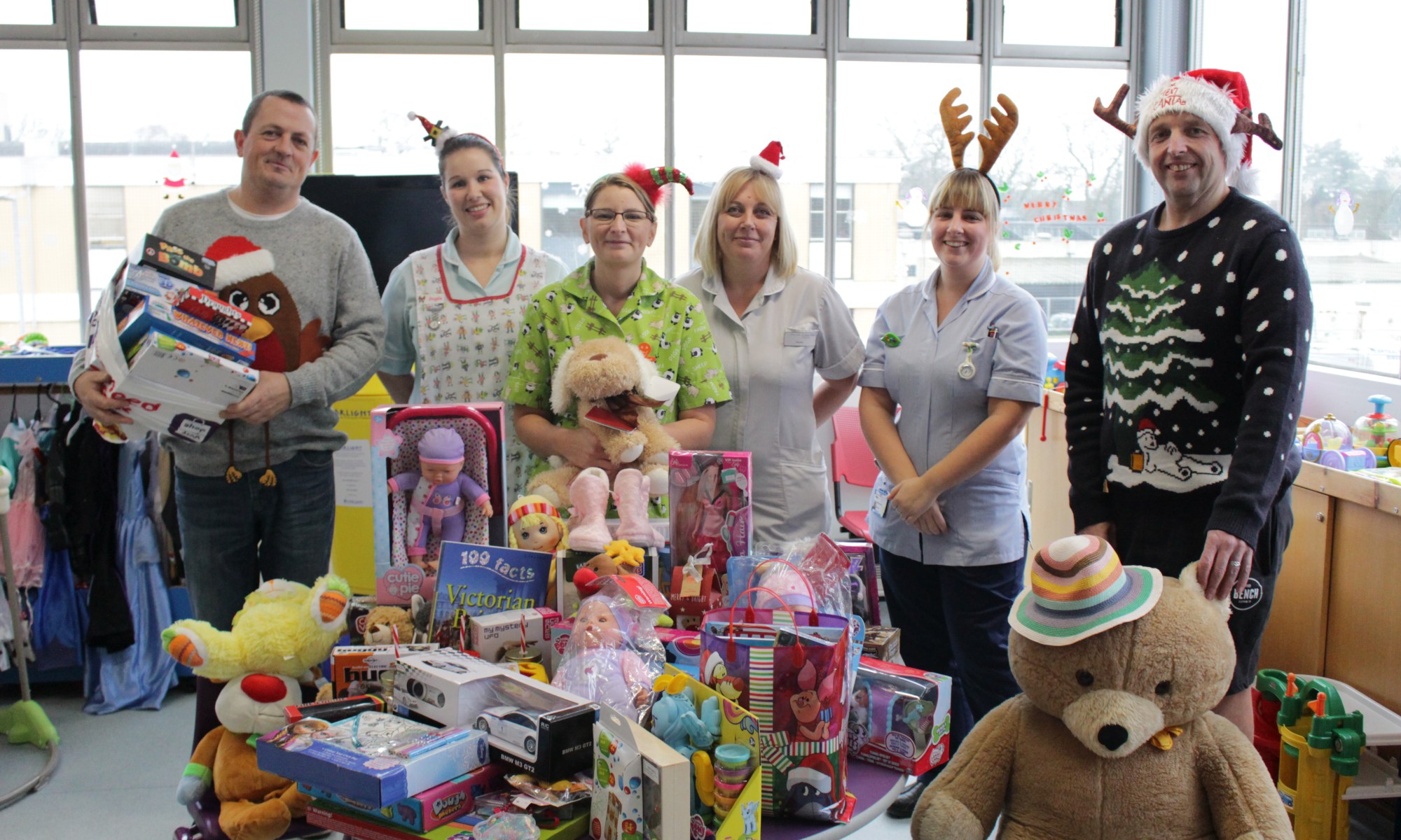 Simon Peach and Matt Newman brought along bags of toys and games to Rudham Ward last week.