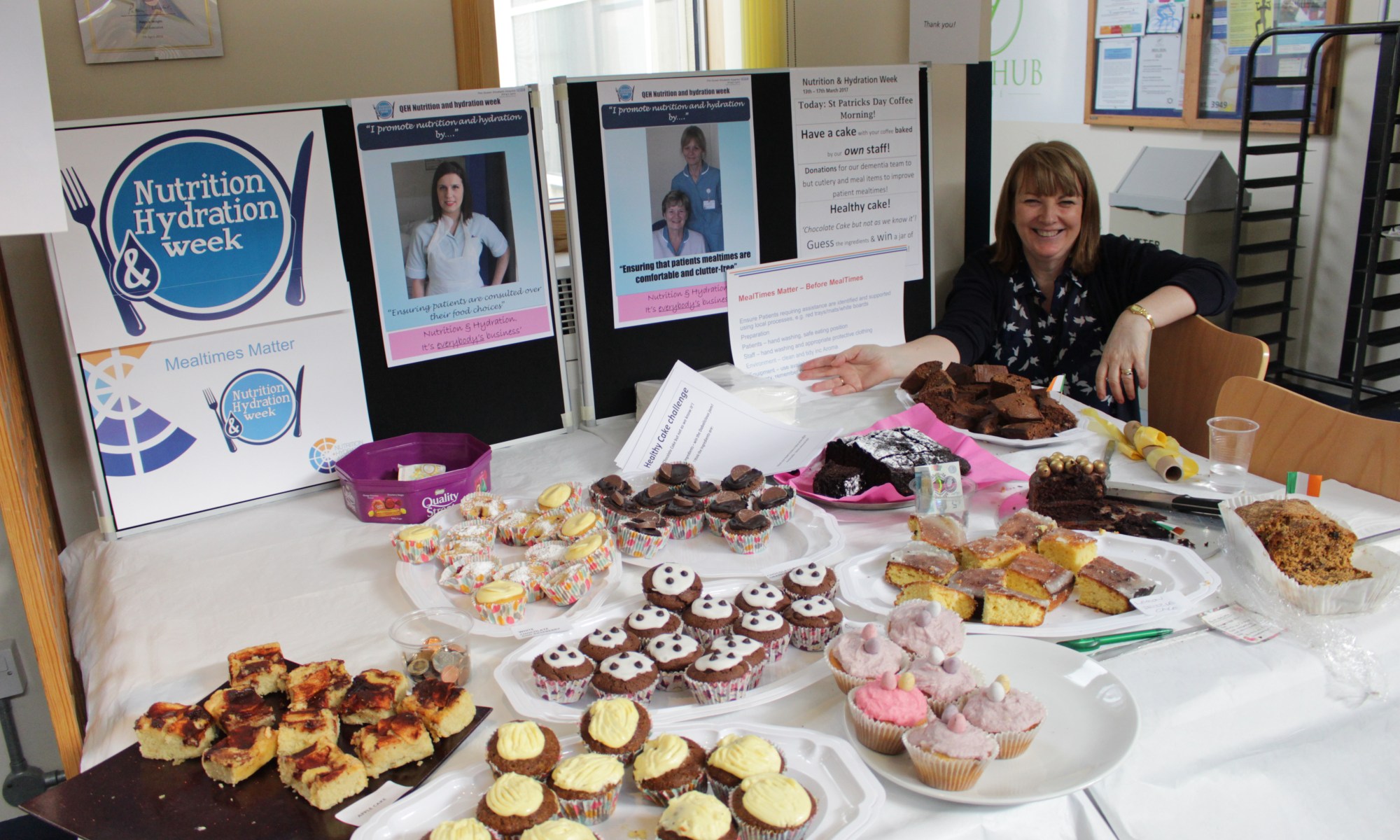 Bakers from across the hospital donated a range of beautiful cakes to be sold at a popular coffee morning in the QEH restaurant, The Hub, as part of Nutrition and Hydration Week.
