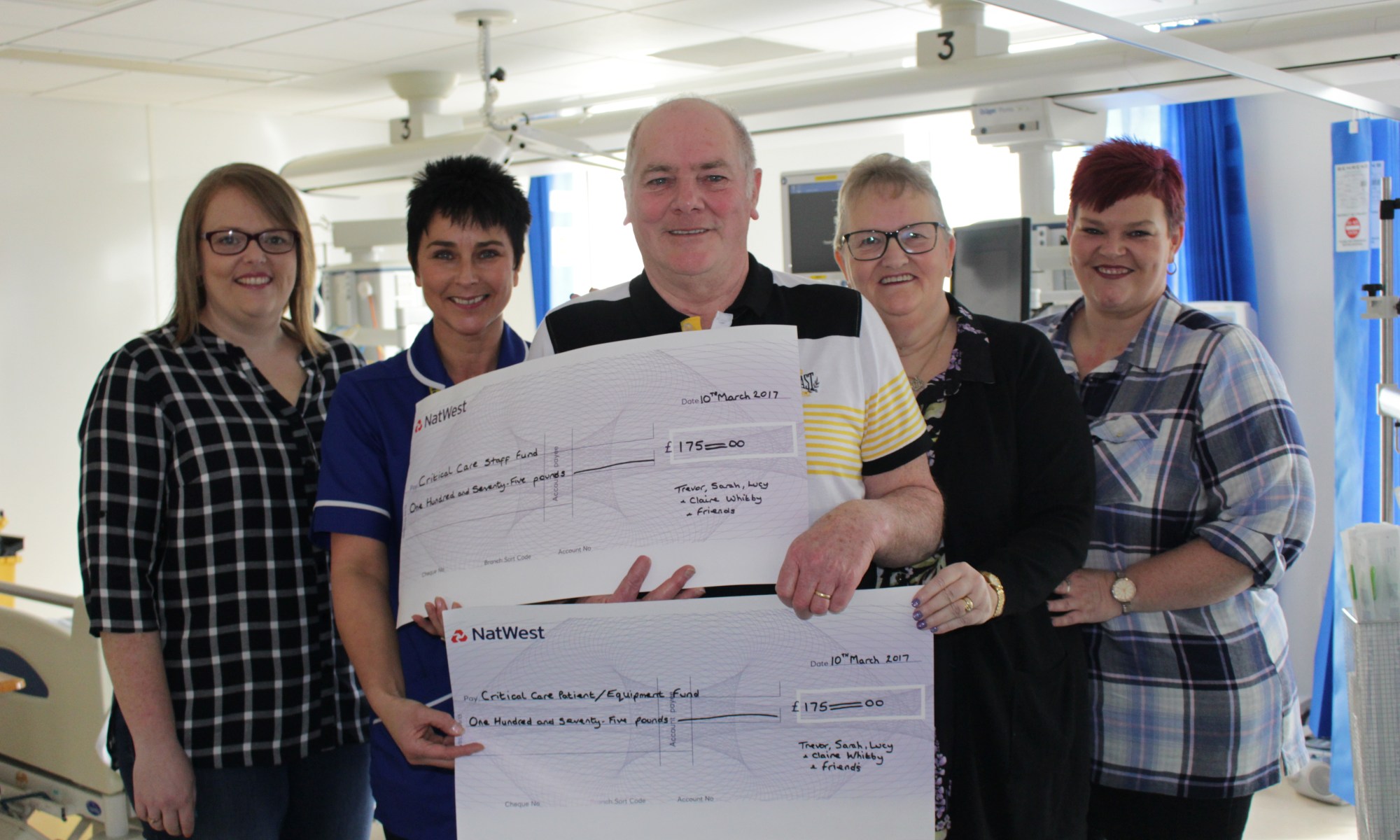 Mr and Mrs Whitby have returned to the unit, along with daughters Claire and Lucy, to present cheques for a total of £350.