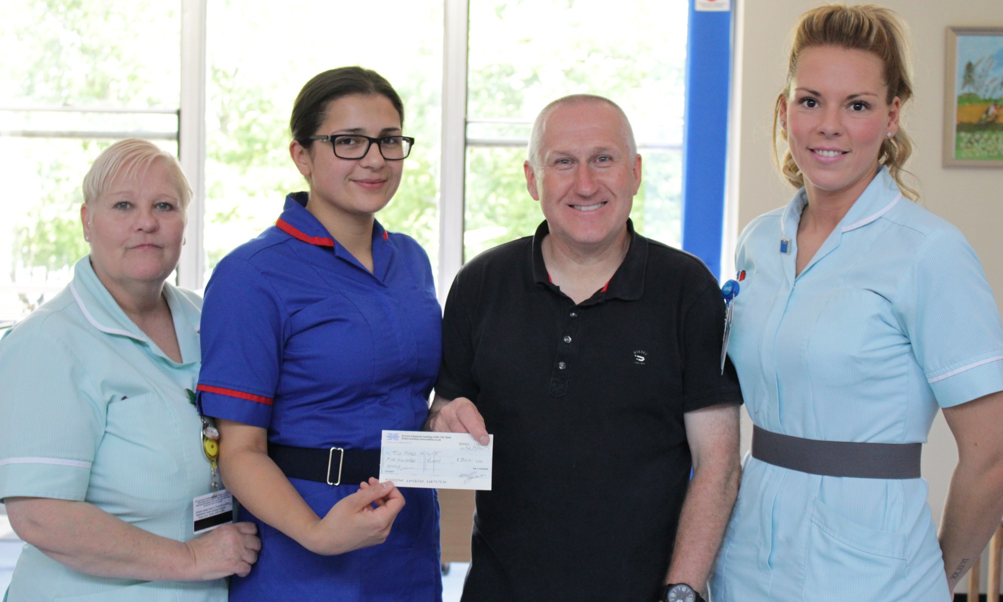 Andrew Rogers is pictured presenting the cheque to Nurse Constance Gaan while Christine Emerson (left) and Hannah Kendle (right) look on. (Picture: Victoria Fear)