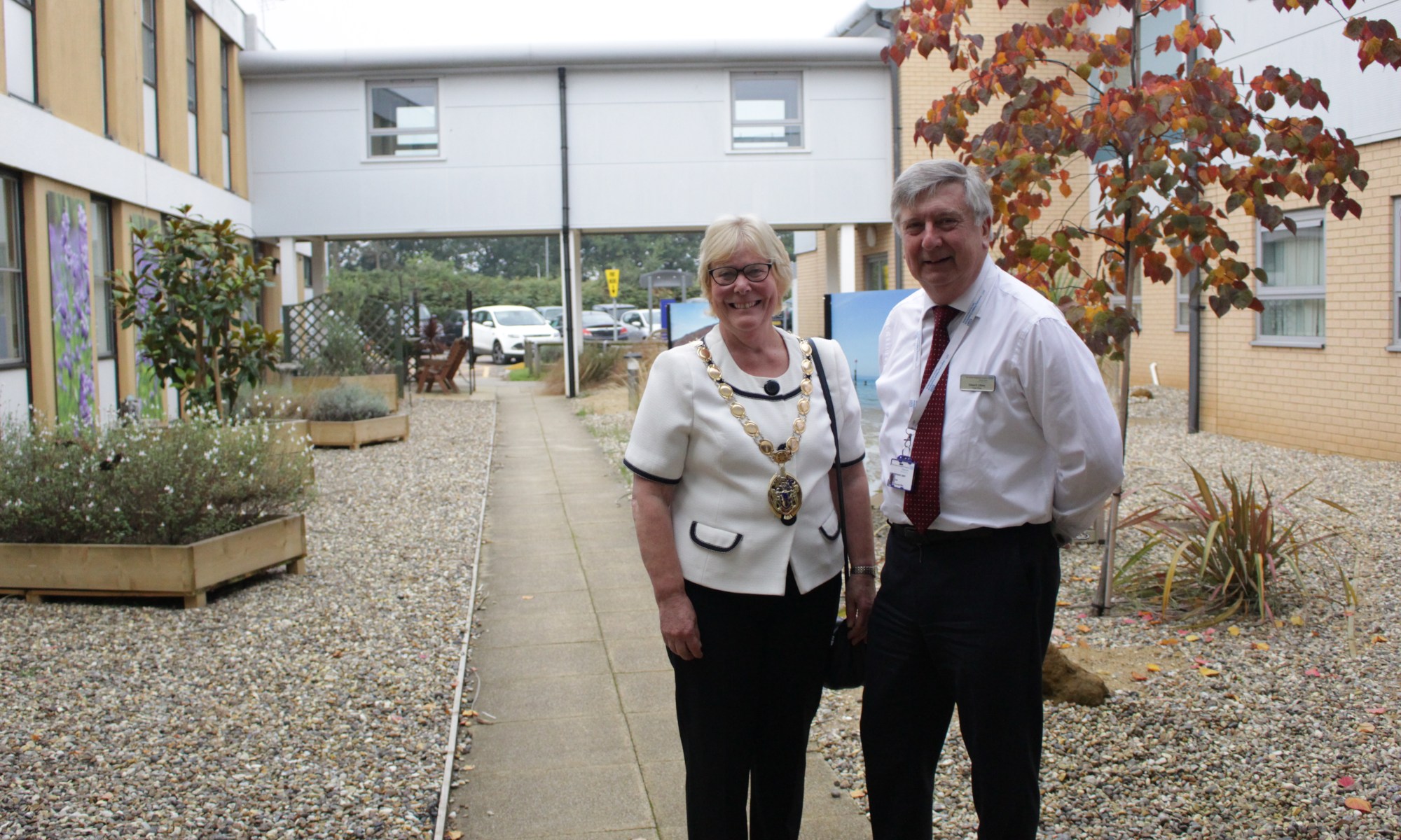 Pictured: Mayor Carol Bower and Trust Chair Edward Libbey within the stunning new gardens.