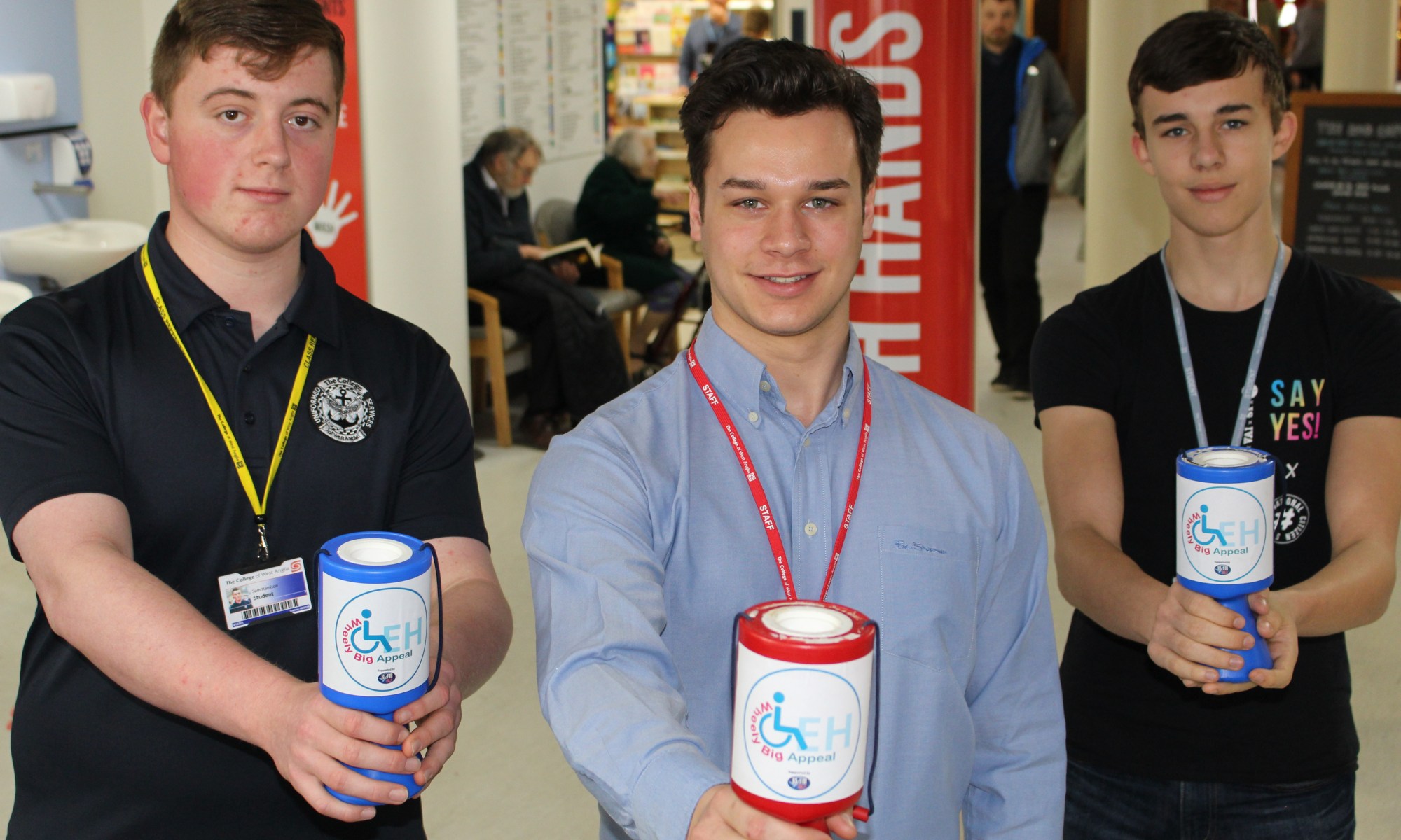 Samuel Harrison and Jordan Jones, who are on the Uniformed Services course, and the college’s National Citizen Service Recruitment Officer Freddie Schunmann spent three hours in the hospital’s reception last Friday (March 16), highlighting the cause with collection tins.