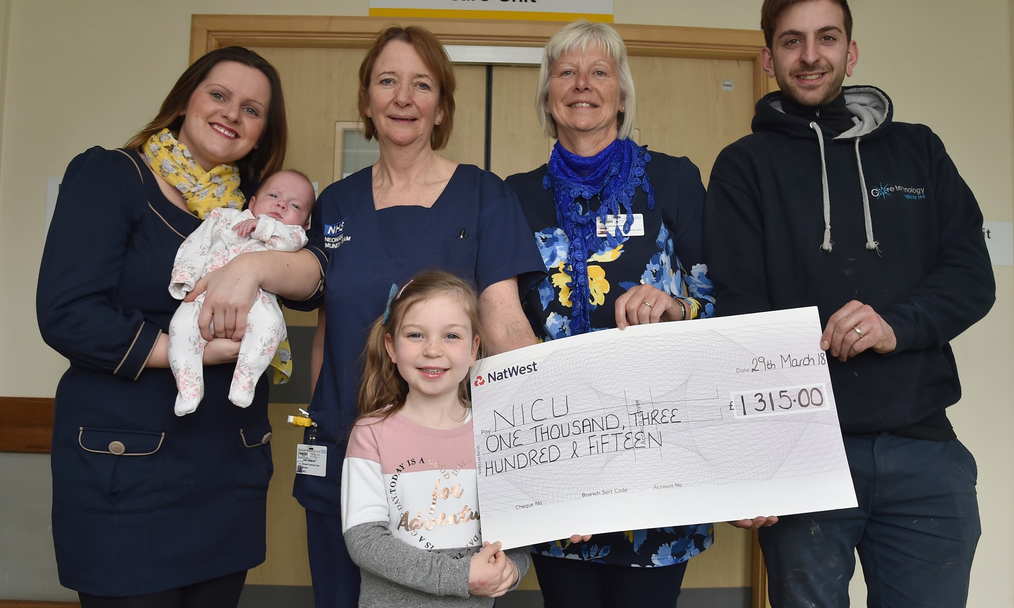 A couple have presented our neonatal intensive care unit (NICU) with £1,315 as appreciation of the staff’s treatment of their youngest daughter.
