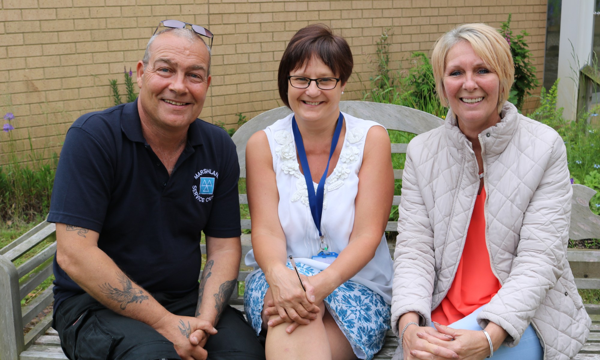 Main photo caption: Lead breast cancer nurse Angela Holford (centre) with Steve and Leigh Arlington,