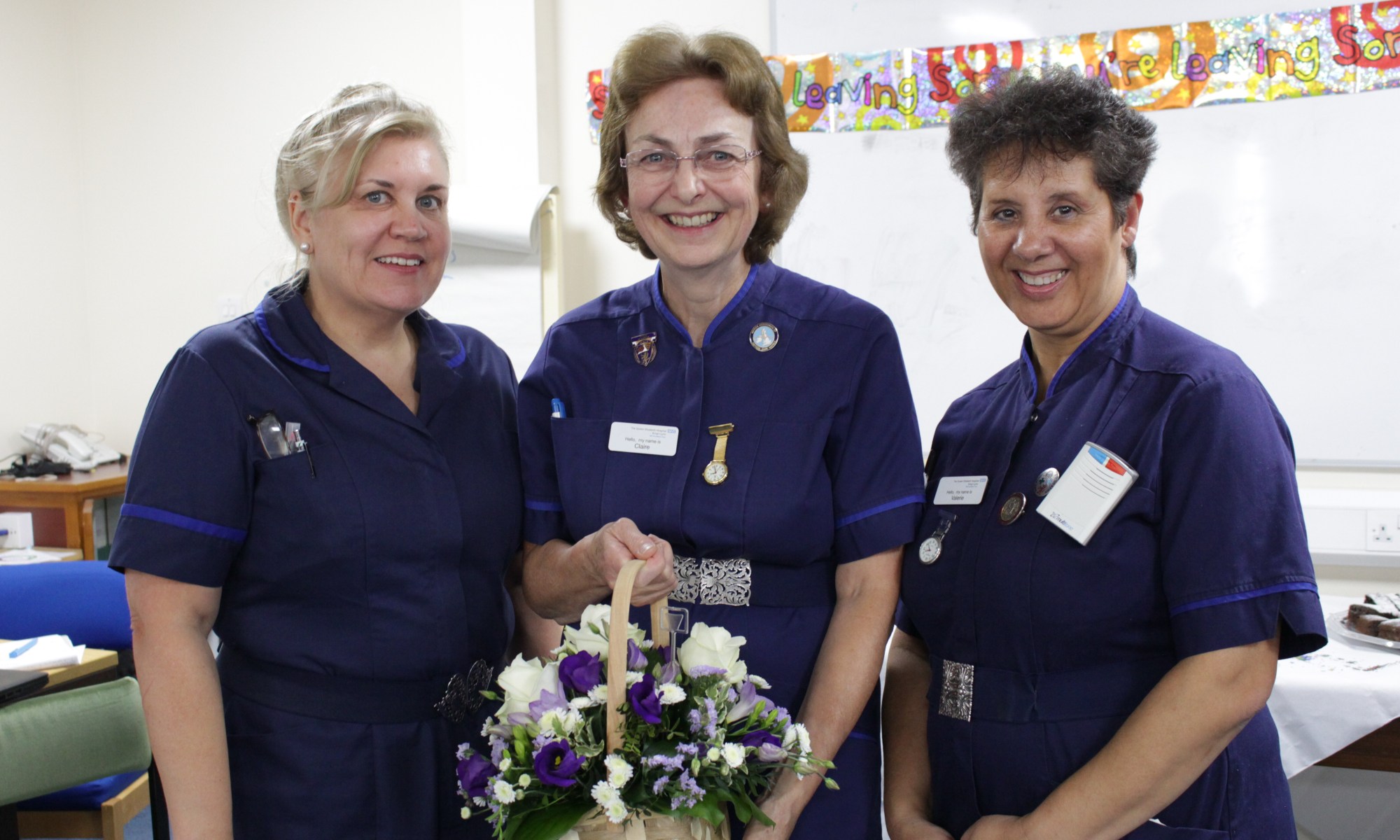 Pictured: Associate Director of Patient Experience, Claire Roberts, centre, is wished well by Chief Nurse Emma Hardwick and Deputy Chief Nurse Val Newton