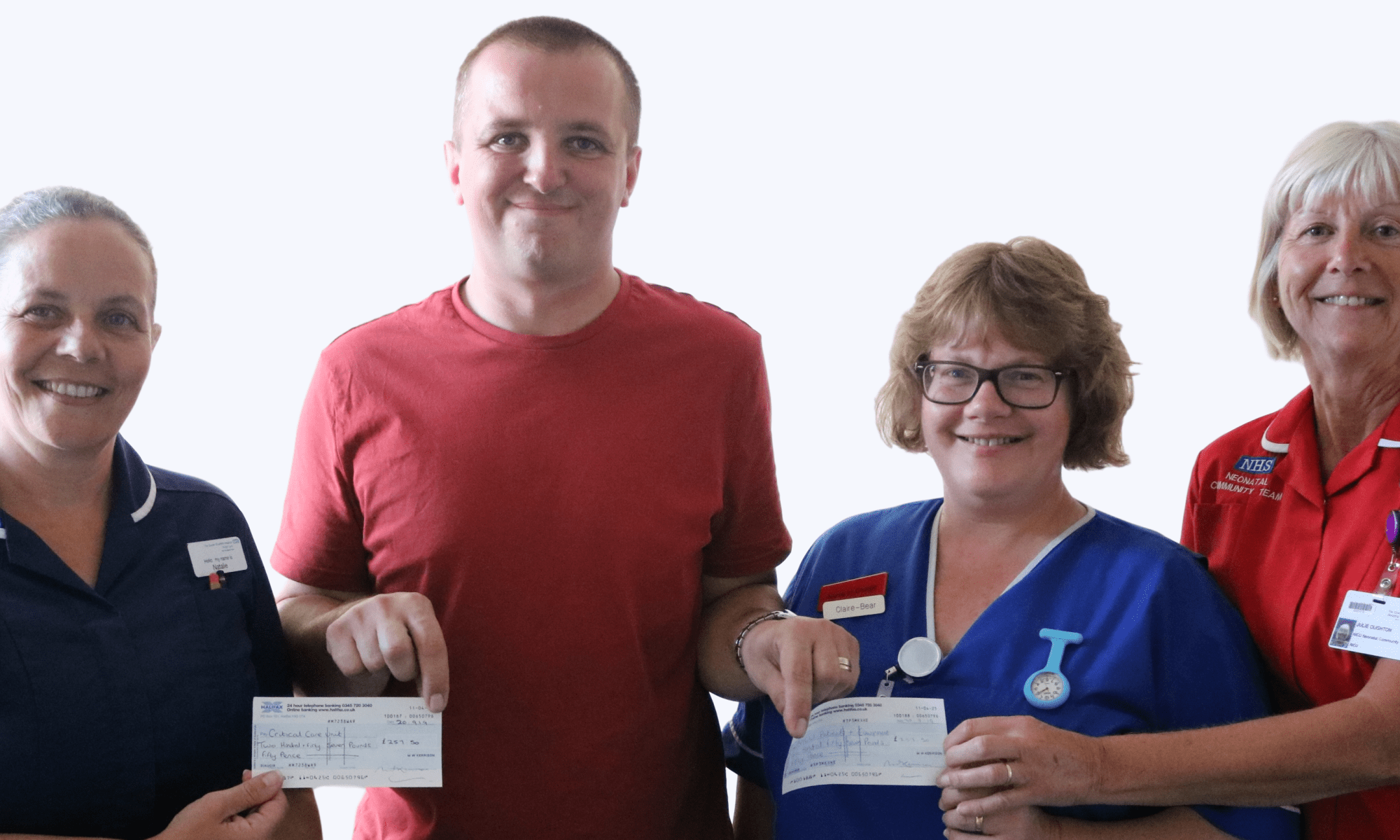 Matthew presented the cheque to grateful members of the Critical Care and NICU teams. The money donated to the Intensive Care Unit will be contributed towards wedges to position patients and improve comfort. NICU’s money will go towards specialist machines that stabilise babies’ temperature or other medical equipment.
