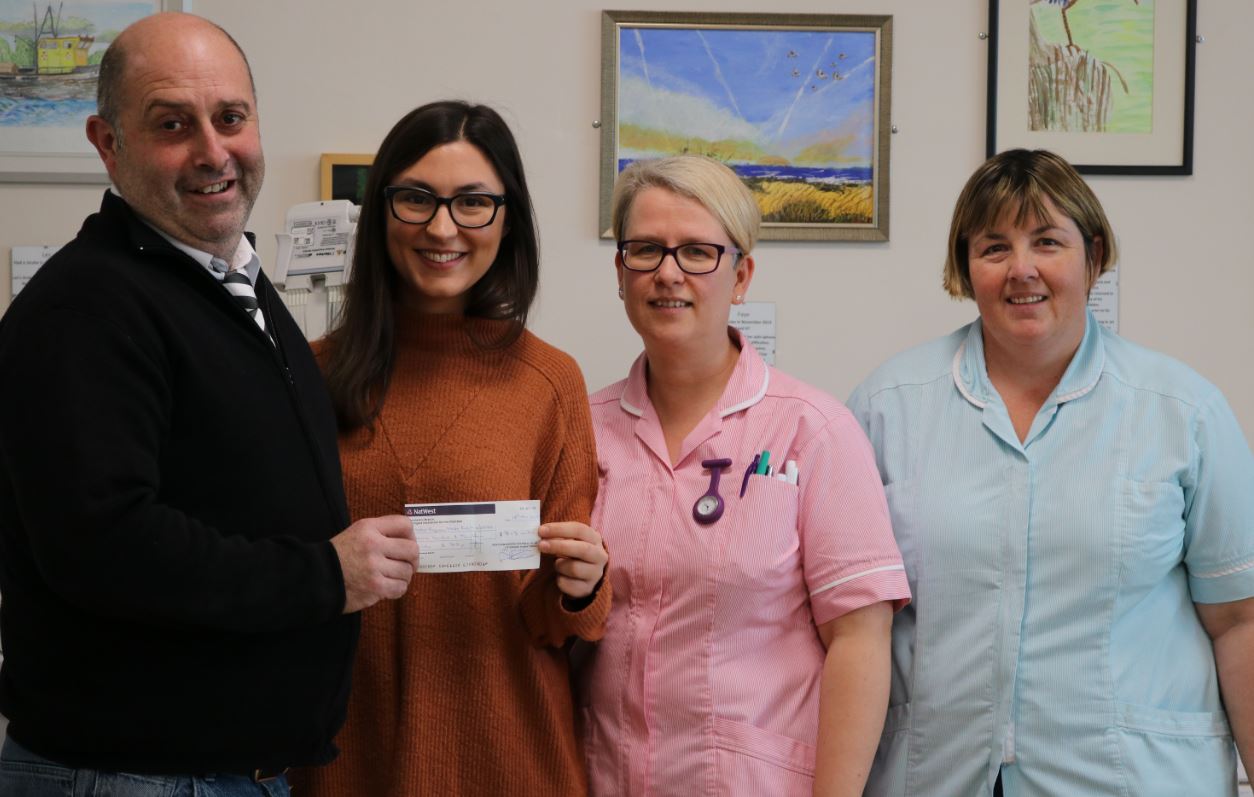 The representatives of Heacham Minors FC presented a cheque for £713.70 to staff in the West Raynham ward in recognition of the treatment Les Dedman, a coach at the club, had received after suffering a stroke.