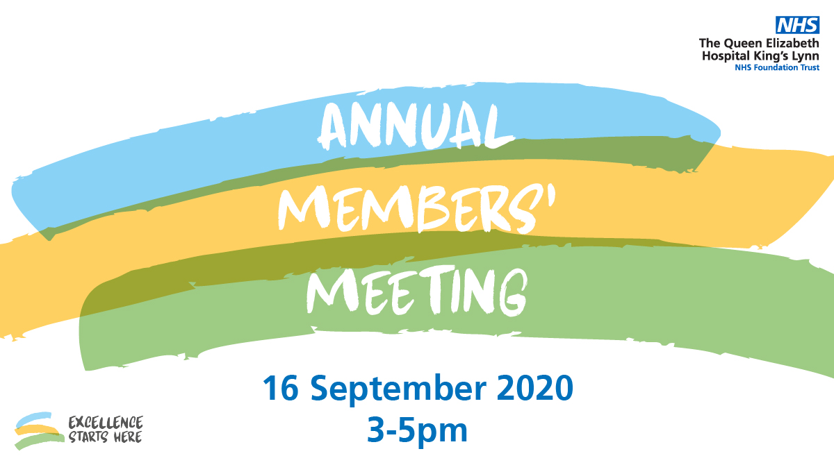 The Queen Elizabeth Hospital King’s Lynn’s Annual Members’ Meeting will be held on Wednesday 16 September 2020, 3pm – 5pm.