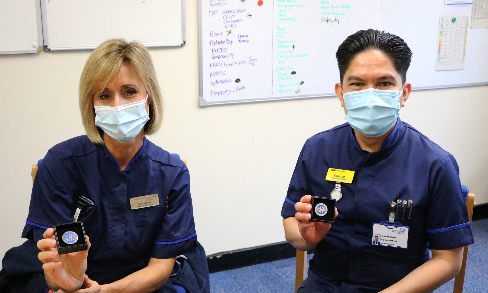 Edmund Tabay, Deputy Chief Nurse, and Karen McGuire, Head of Nursing for Medical Division received their awards on Monday 21 December during a virtual presentation from the Chief Nursing Officer for England, Ruth May.