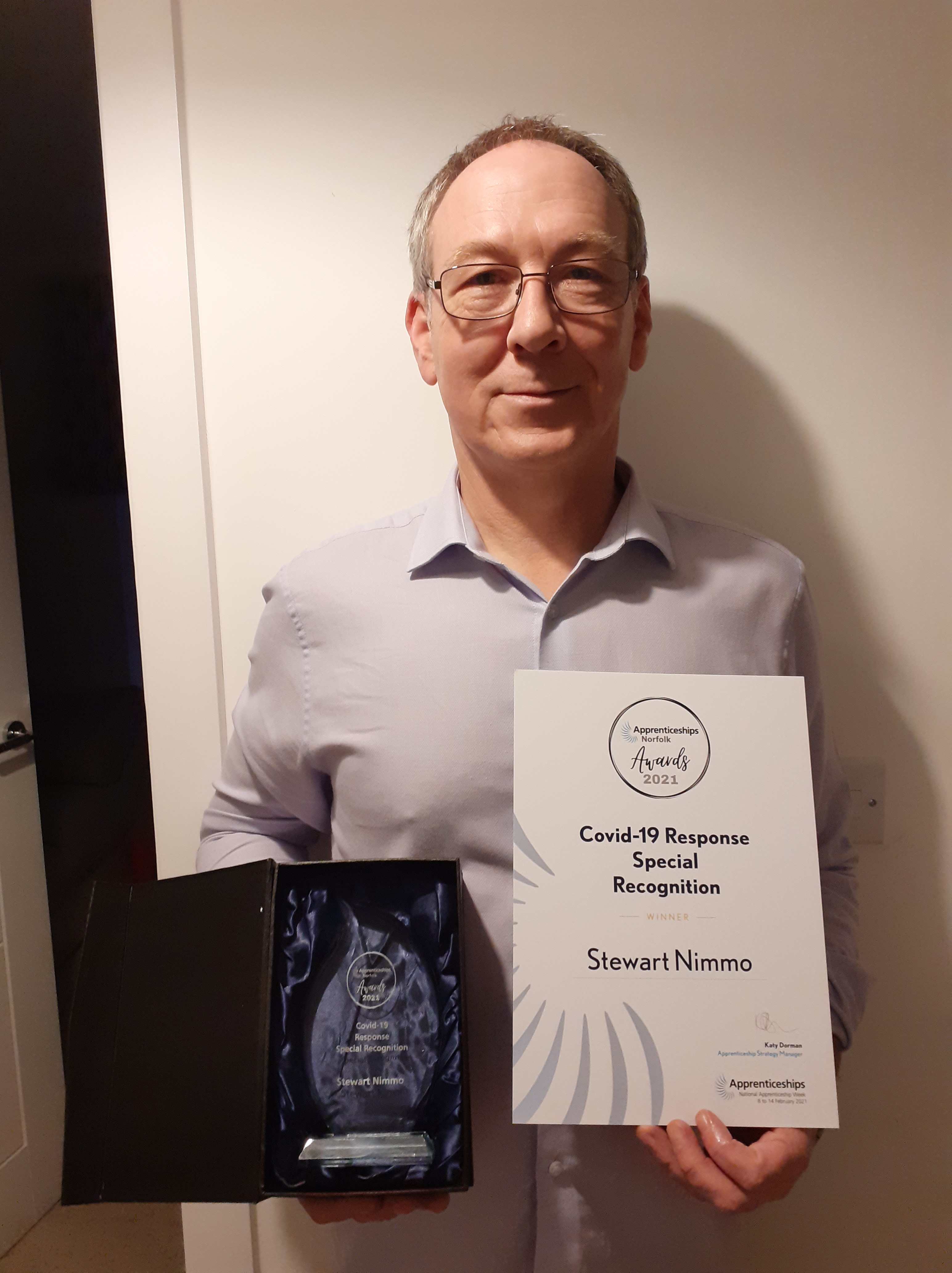Stewart Nimmo, Catering Manager at The Queen Elizabeth Hospital in King’s Lynn, has been recognised in the Apprenticeships Norfolk Awards 2021.