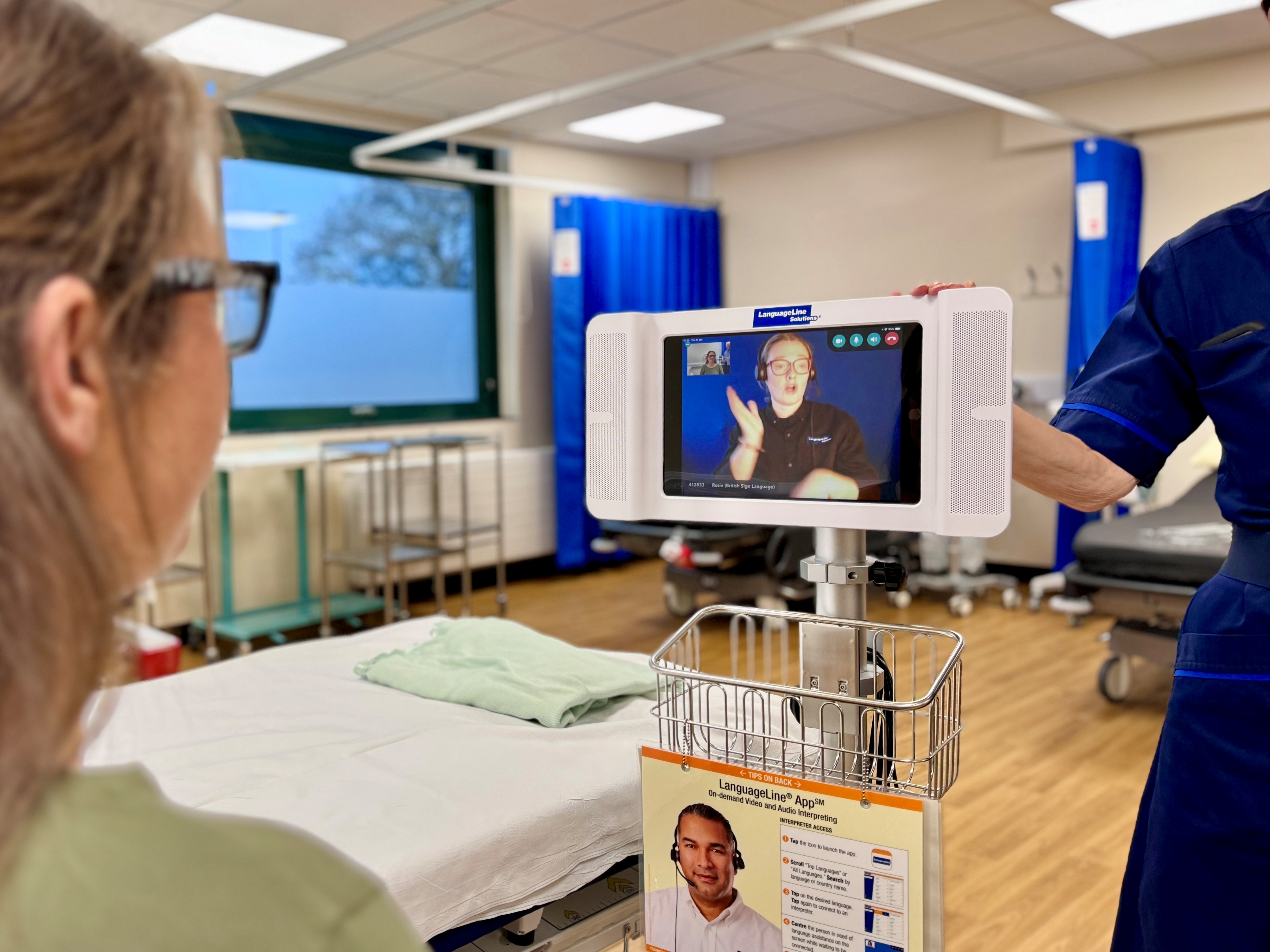 The Language Line service, which was rolled out across the Trust in January, allows access to video and audio interpreters, including British Sign Language, at the touch of a button for patients who are deaf or whose first language is not English.