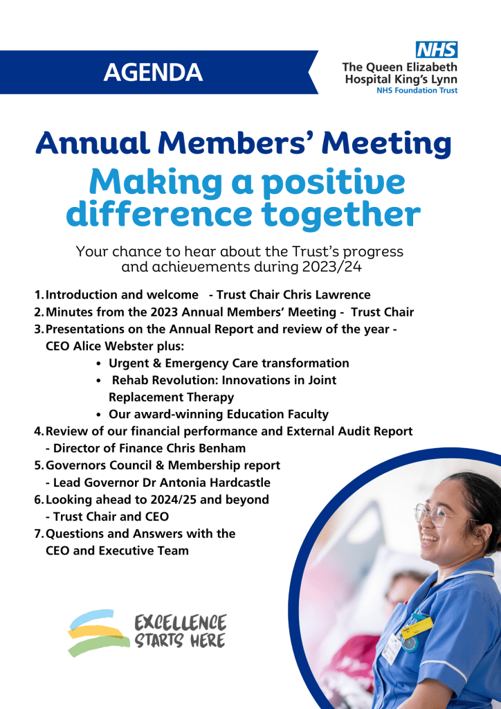 The Annual Members’ Meeting for The Queen Elizabeth Hospital, King’s Lynn takes place later this month and everyone is invited to learn about a year of innovations.