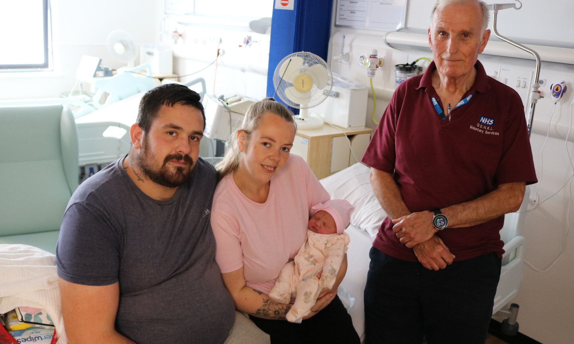Chief Nurse Pippa Street commented: “We send our congratulations to Charley and Kyle on the arrival of their daughter and our grateful thanks to our volunteer David for his swift actions in getting them to the ward as quickly as possible.”