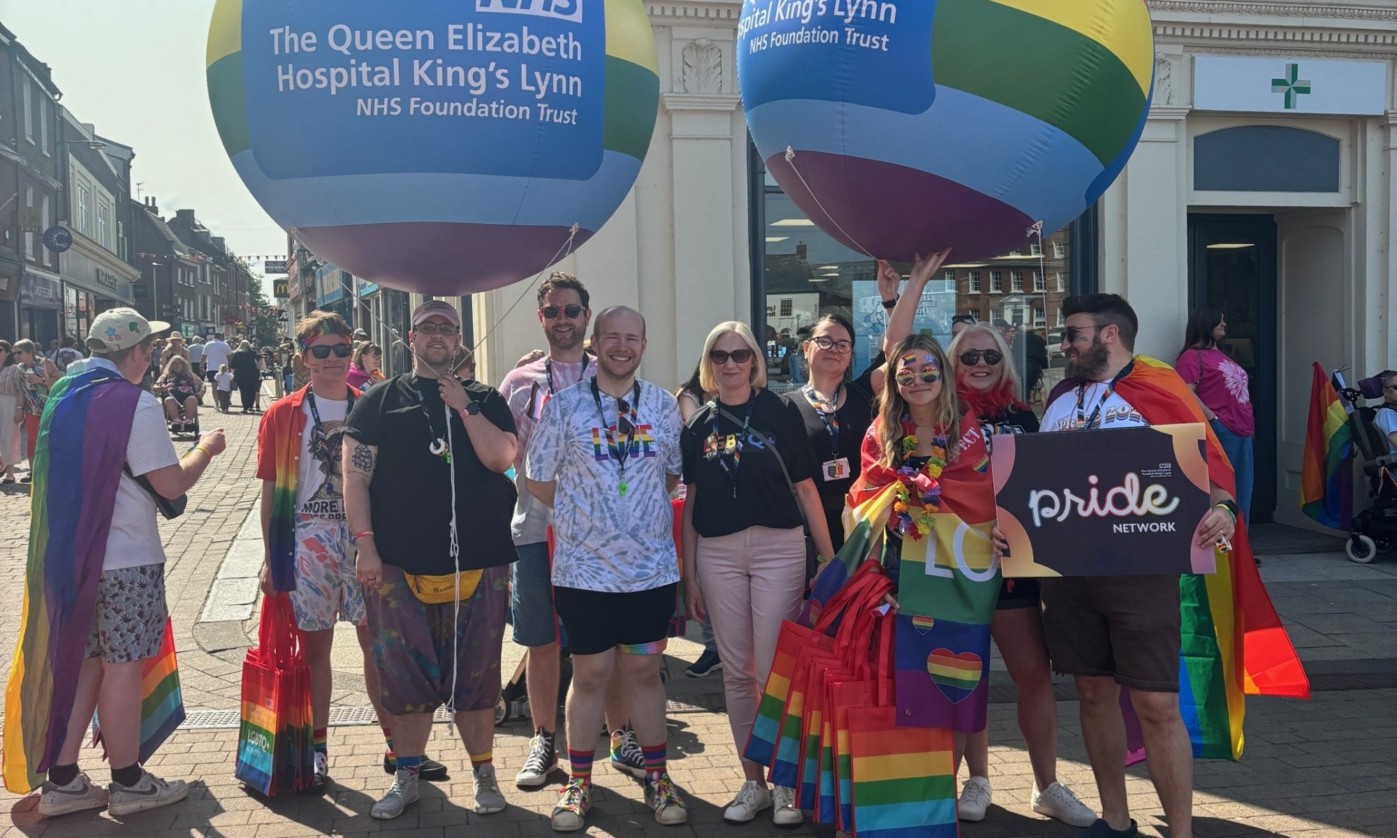 The rainbow flags were flying as Team QEH led the parade through the town centre with The QEH Pride staff network’s giant rainbow balloons leading the way. The event, which is fast becoming one of the biggest in the King’s Lynn town calendar, began on the Tuesday Market Place before attendees moved on mass through the town ending at The Walks for an afternoon of fun activities and celebration.