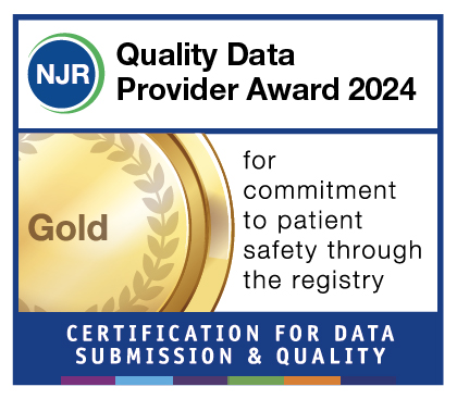 The hospital has been awarded the National Joint Registry (NJR) Quality Data Provider Gold status, in recognition of its outstanding commitment to patient safety and the quality of joint replacements for hip, knee, ankle, elbow, and shoulders.