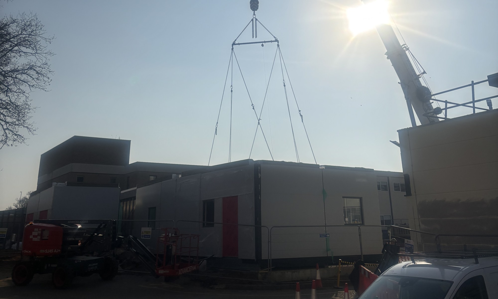 The building is being added to an area to the west of The QEH site, accessible via the service road. Whilst the crane is in situ, and work is ongoing, there are marshals in place to direct traffic and pedestrians as needed. Whilst the service road remains open through the work, those wishing to enter The QEH site are asked to do so via the main entrance where possible to reduce congestion in the area.