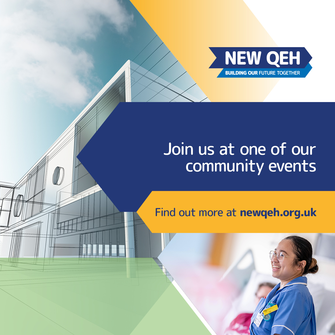 Paul Brooks, Director of Estates and Facilities and Senior Responsible Officer for the New QEH, will be leading the events. He said: “This is the third set of public information sessions we’ve hosted in the local area since we have been part of the New Hospital Programme, and I’m pleased to be able to bring along visuals to show people what the New QEH will look like.