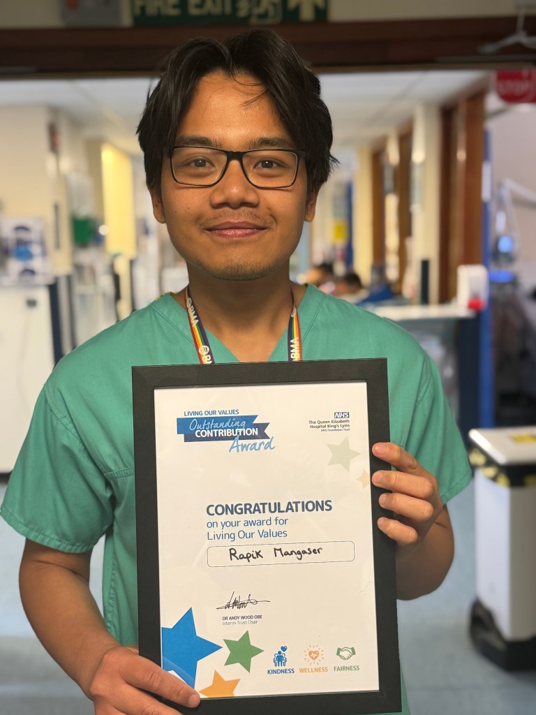 Last month, foundation year 2 post-graduate (FY2) doctor, Rapik Mangaser was awarded the Outstanding Contribution for Living Our Values Award for offering outstanding patient care and going beyond the call of duty.