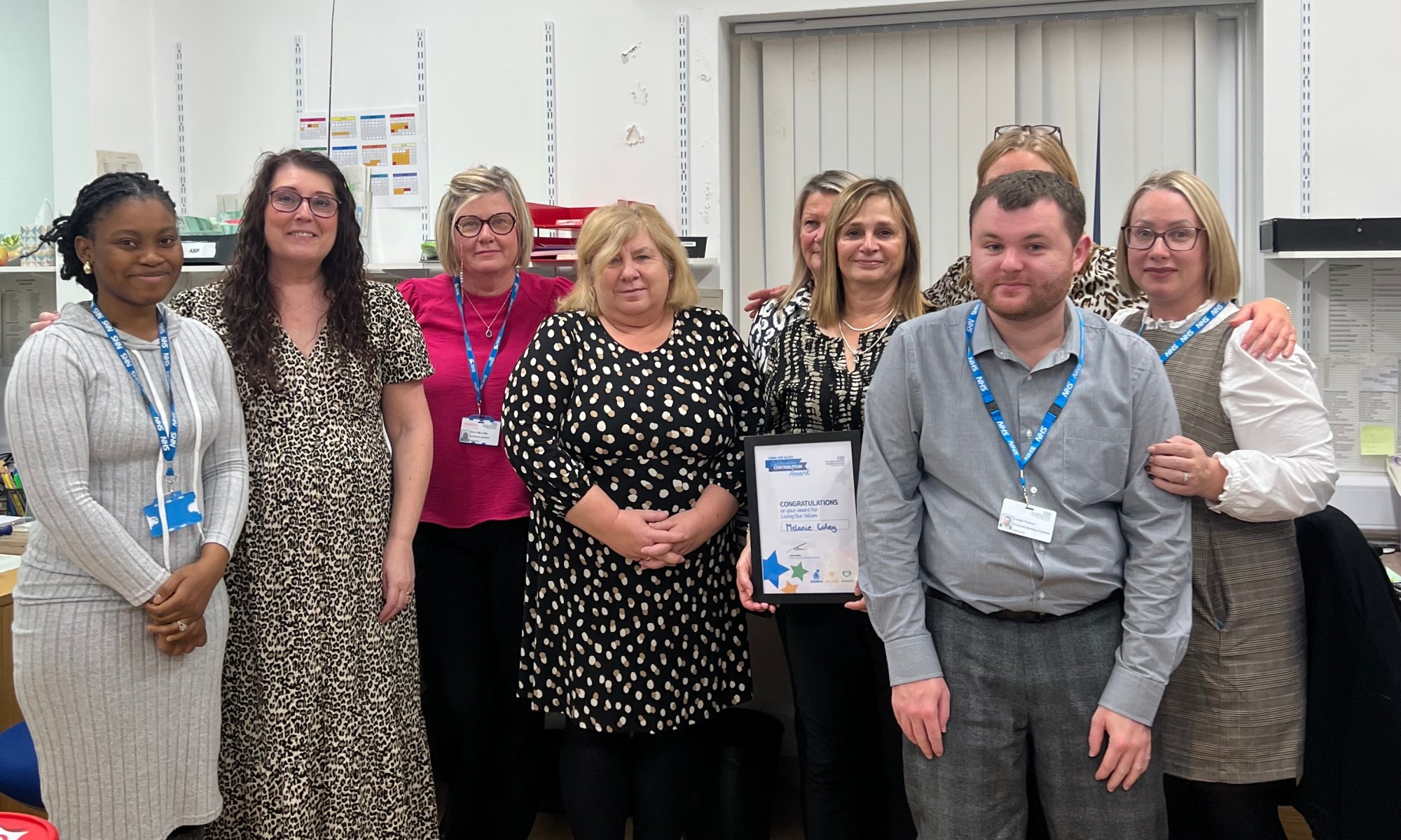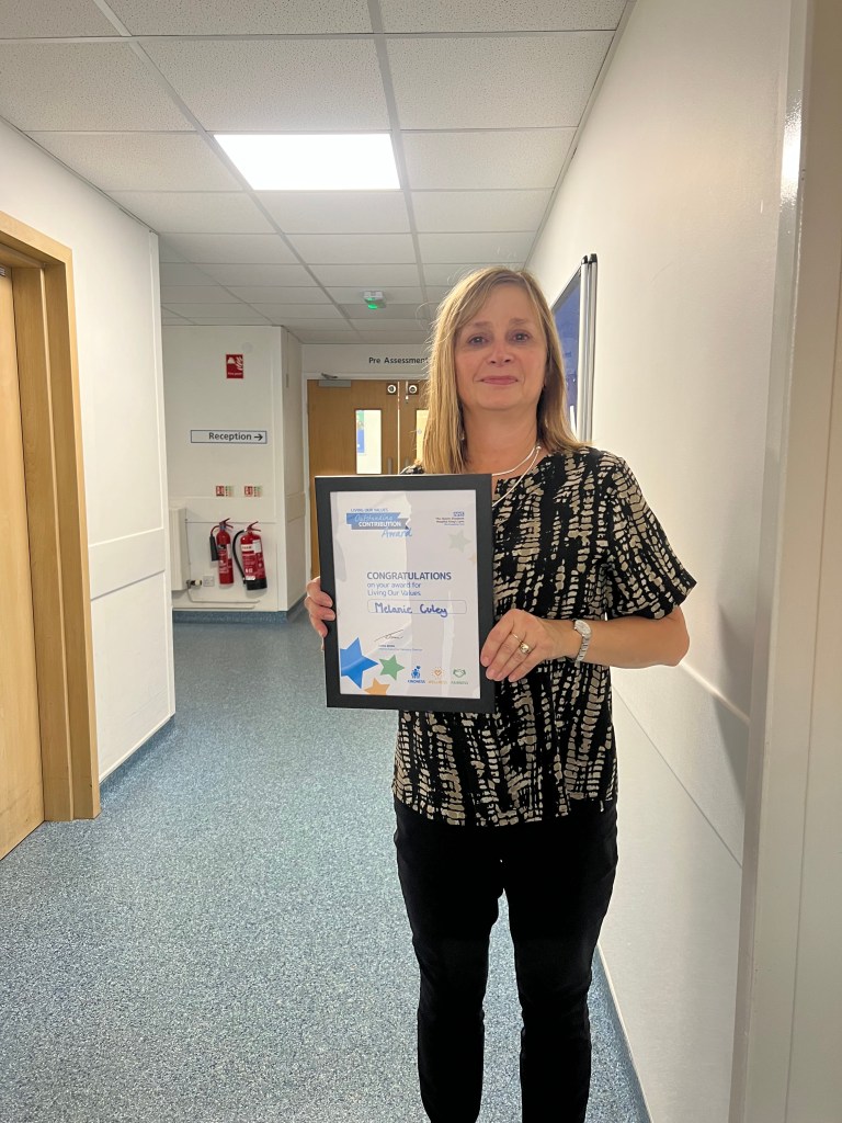 Last week, Admission Clerk Melanie Culey was awarded a Living Our Values Outstanding Contribution Award by Interim Executive Managing Director Chris Bown.
