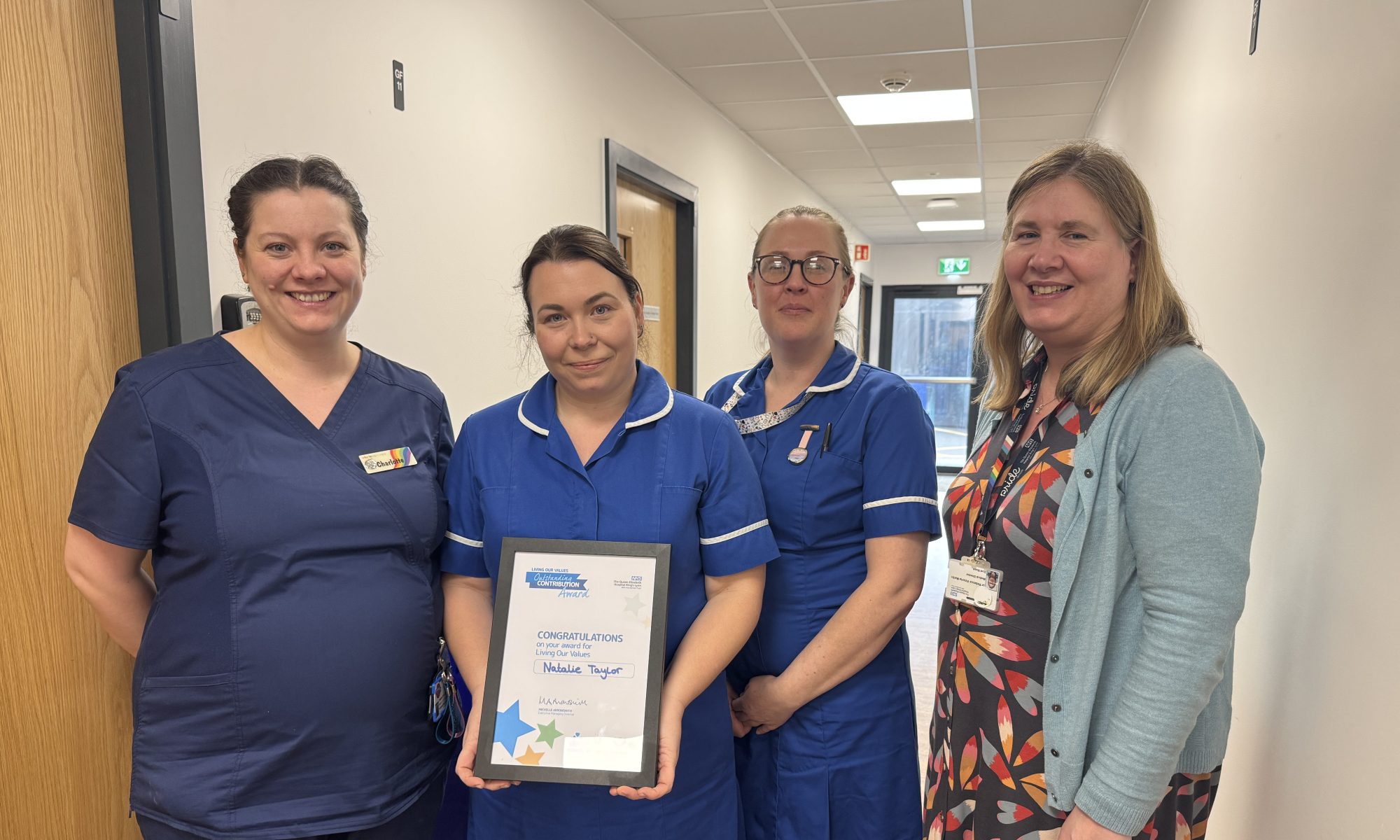 Natalie Taylor was presented with an Outstanding Contribution to Living Our Values Award on World Cancer Day (04.02.26) in a surprise ceremony with The Queen Elizabeth Hospital’s Medical Director, Dr Rebecca Martin.