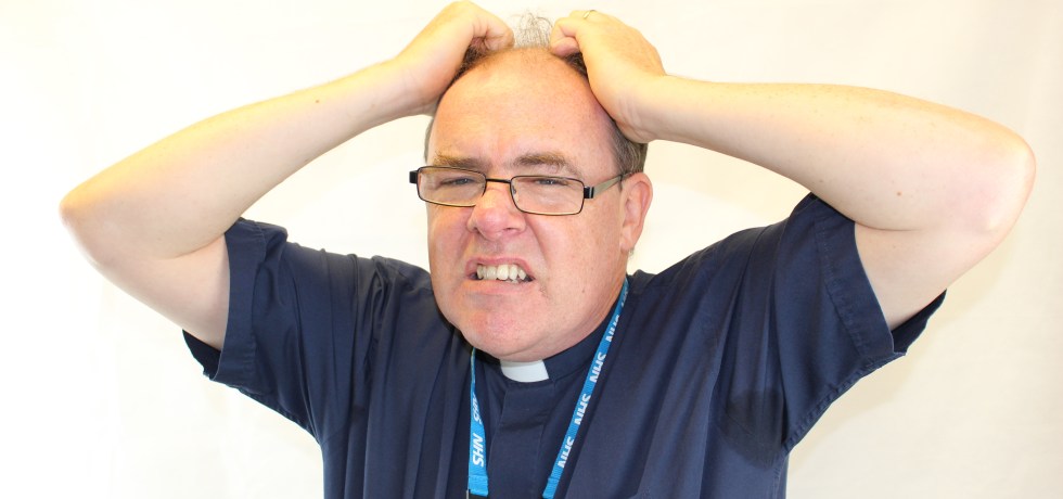 Chaplaincy member being shaved bald for Macmillan fundraiser